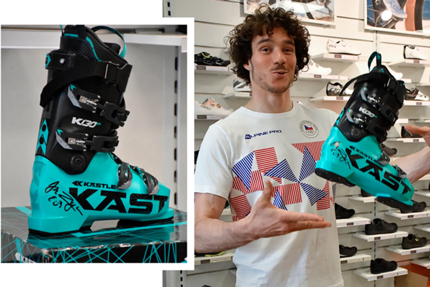 Návštěva se ale neodehrála jen v duchu ladění výbavy. Jan se s námi podělil o zákulisí tréninku, mluvil o tom, co obnáší příprava mezi sezónami – a na závěr ještě přidal parádní gesto: podepsal nám lyžáky, které nyní budou připomínat, že sportovní výkon se rodí nejen v zimě na svahu, ale i v létě v sedle kola.
