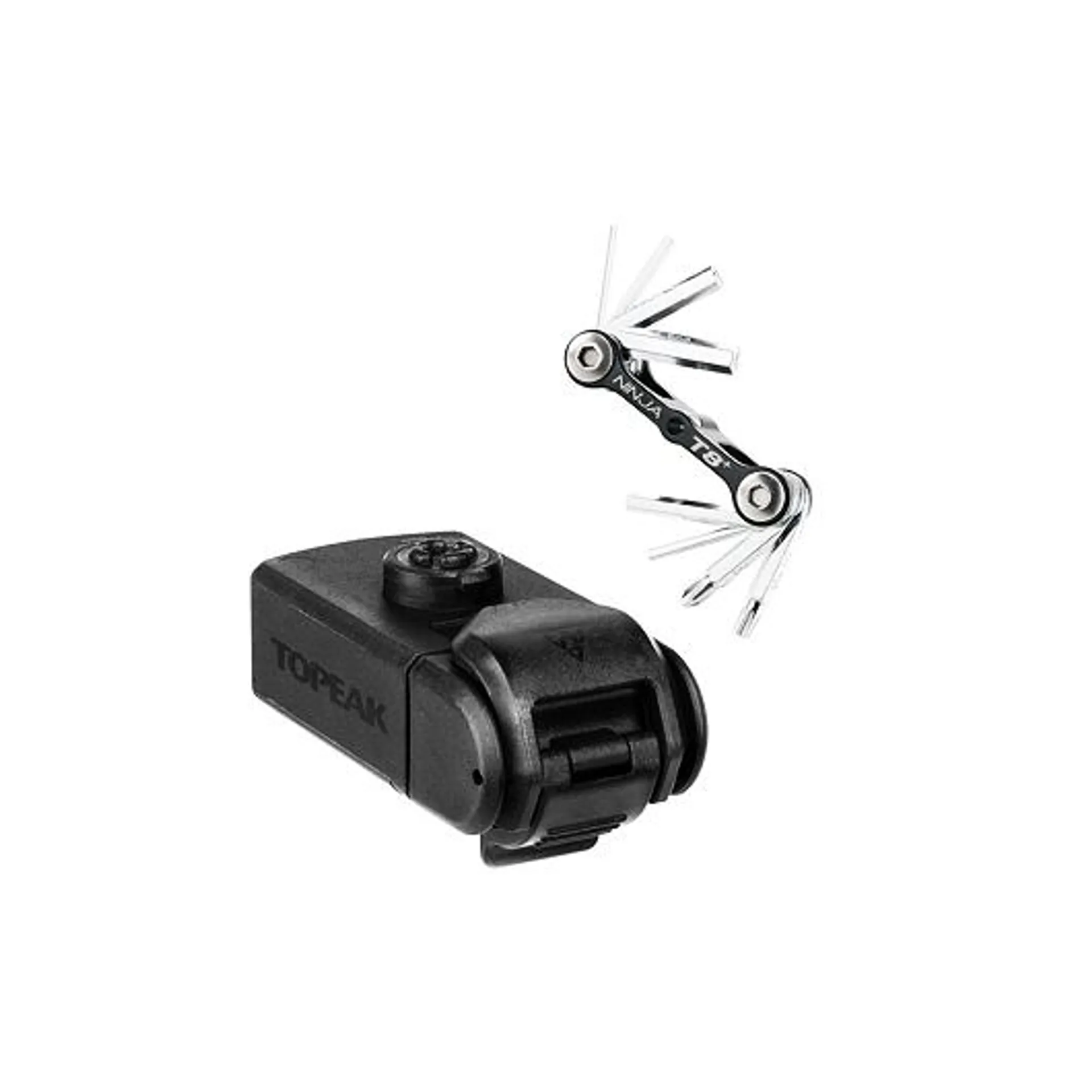 Kompaktní schránka s cyklistickým nářadím kompatibilní se systémem košíků na láhev Ninja cage. Řada Ninja využívá zdánlivě nevyužitelný prostor na kole a nejinak je tomu i v tomto případě. Miniaturní nářadí o 8 funkcích je tak vždy jednoduše dostupné k použití.
