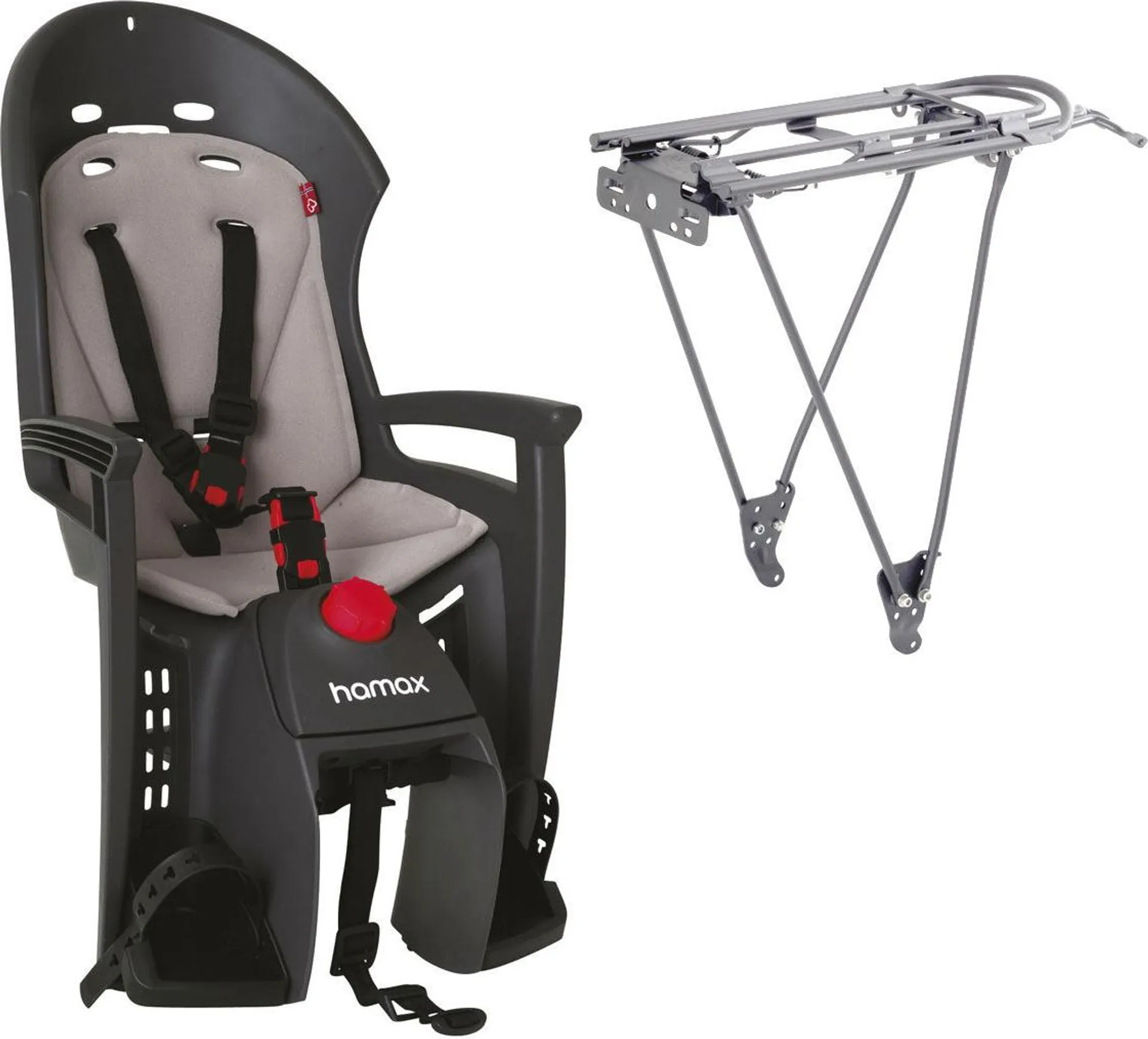 Odpružený montážní držák Hamax sedačky Hamax Siesta zajišťuje vynikající odpružení sedačky a chrání tak páteř dítěte. Přídavná spona bezpečnostního pásu na hrudi umožňuje držet dítě jednou rukou a druhou rukou držet kolo. Hrudní spona neruší ochrannou přilbu, když se dítě dává, nebo zvedá ze sedačky. Sedačka je konstruována tak, že se při naklápění neměmí poloha těžiště směrem dozadu. To vše je zárukou bezpečné a komfortní jízdy dítěte na kole.