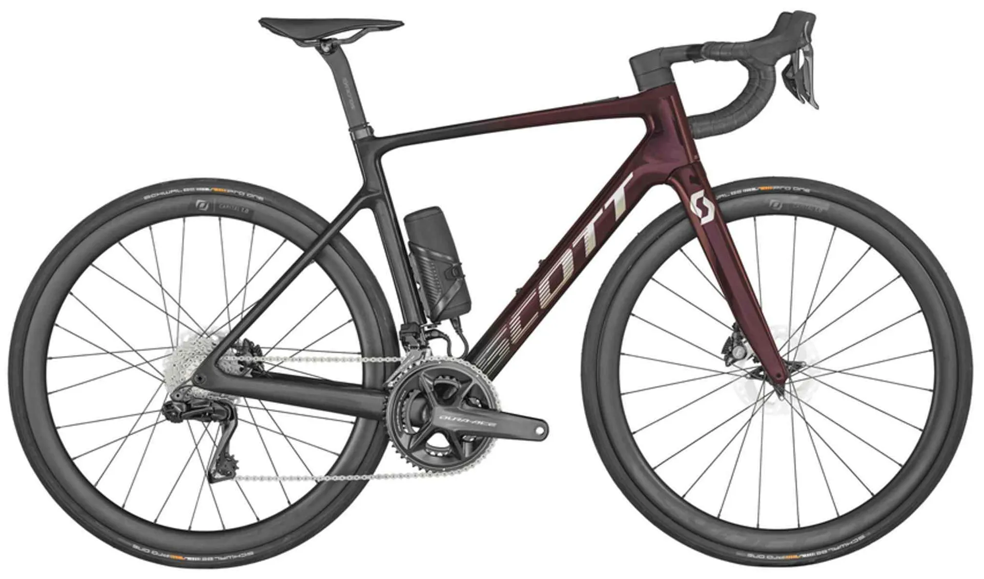 Kolo je postaveno na karbonovém rámu Addict eRIDE Disc HMX, s vidlicí Addict eRIDE HMX, s elektronickými komponenty Shimano Dura-Ace Di2 Disc, 24 rychlostí, brzdami Shimano BR-R9270 Hyd.Disc Flatmount, koly Syncros Capital 1.0 40e Disc a plášti Schwalbe PRO ONE TL.
