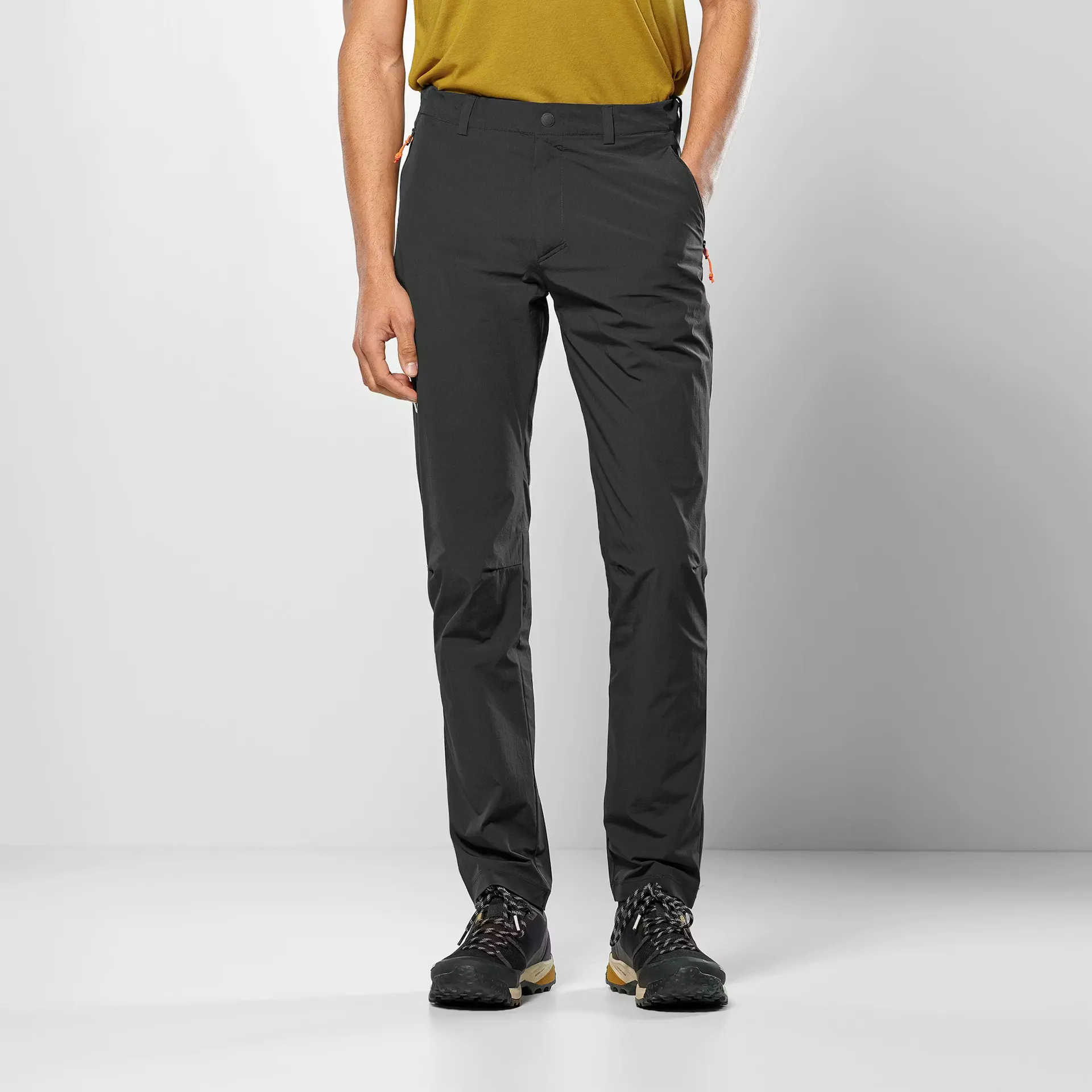 Kalhoty jsou vyrobeny z lehkého materiálu Durastretch, který nabízí čtyřsměrnou elasticitu pro maximální volnost pohybu. Materiál je navíc odolný proti větru a rychle schne, což zajišťuje komfort i při proměnlivém počasí.