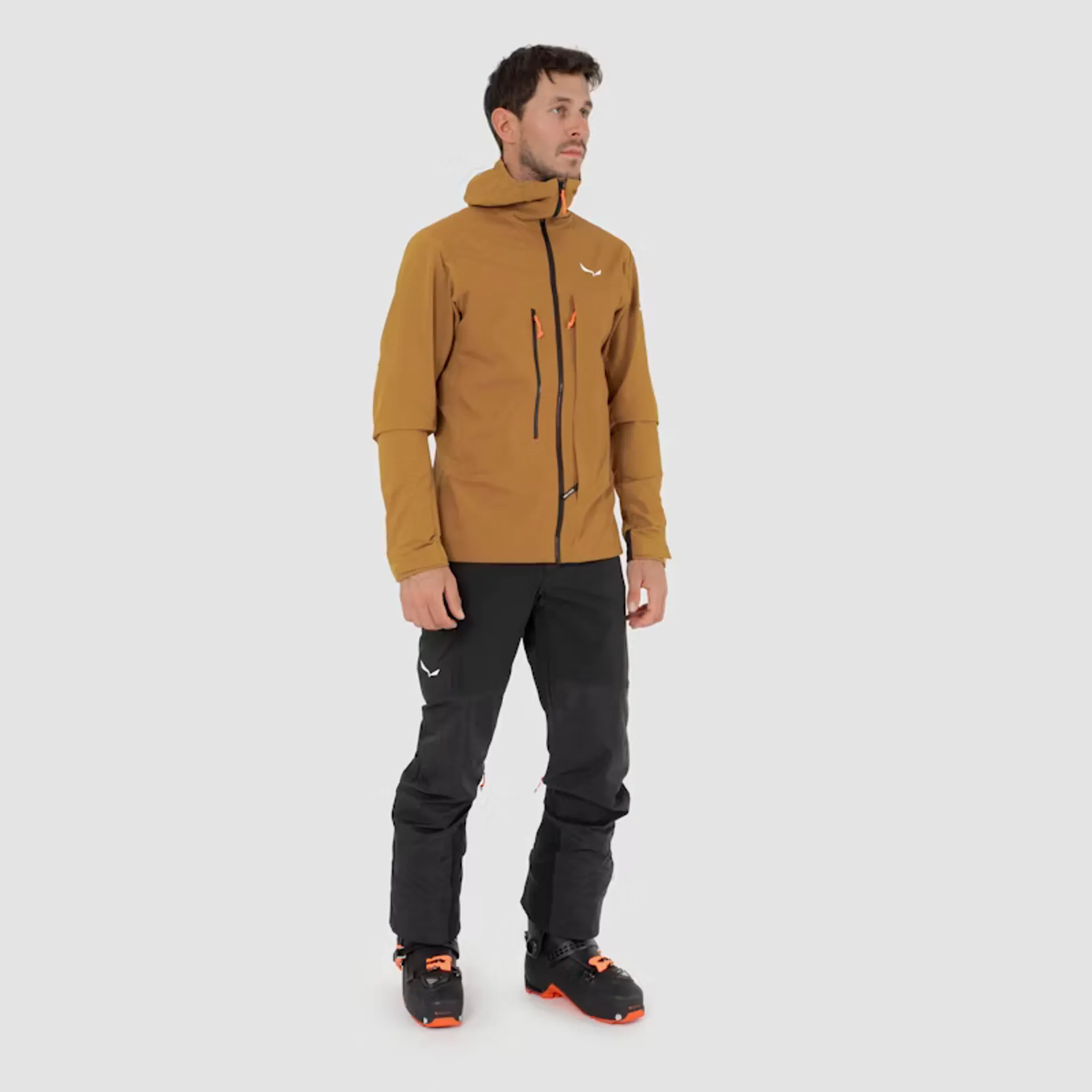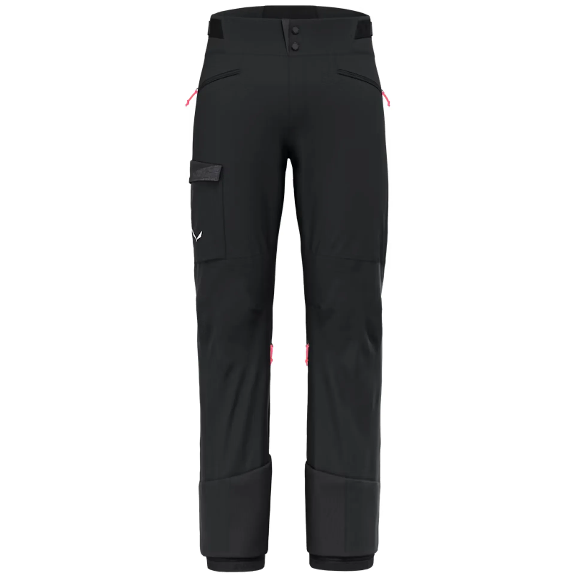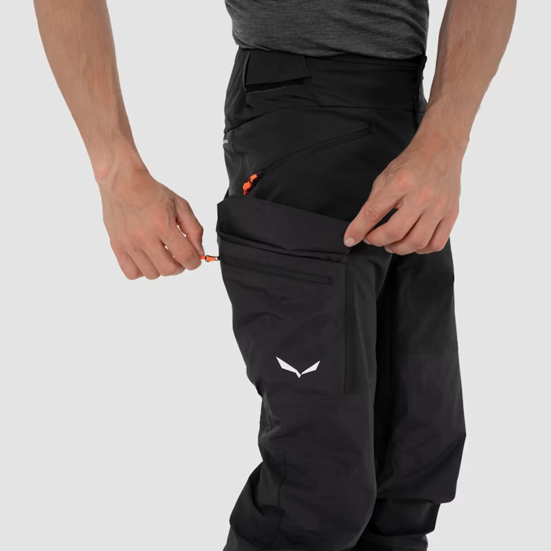 Pánské skialpové kalhoty Salewa SELLA DST HYB PANT staví na hybridní konstrukci body-mapped, která přesně vyvažuje ochranu a prodyšnost pro náročný skitouring. Hlavní materiál Durastretch Merino (softshell) spolehlivě dýchá a odvádí vlhkost při výstupech, zatímco přední stehna a sed kryjí větru- a voděodolné panely Powertex 3L pro jistotu při chladných sjezdech. Pro svobodu pohybu nechybí klín v rozkroku a strečová konstrukce; teplotu jemně doladíte pomocí dlouhých ventilačních zipů na nohavicích. Konce nohavic chrání mediální protiřezové výztuhy proti hranám lyží a mačkám, a rozšiřitelný spodní lem na zip s elastickým klínem usnadní obutí přes skialpové boty. Uložíte vše potřebné do dvou zipových kapes na ruce a zipové cargo kapsy s otevřenou přihrádkou pod ní. Výsledkem jsou kalhoty, ve kterých zůstanete aktivní, v suchu a bez prochladnutí po celý den – od prvních kroků s pásy až po rychlé sjezdy.