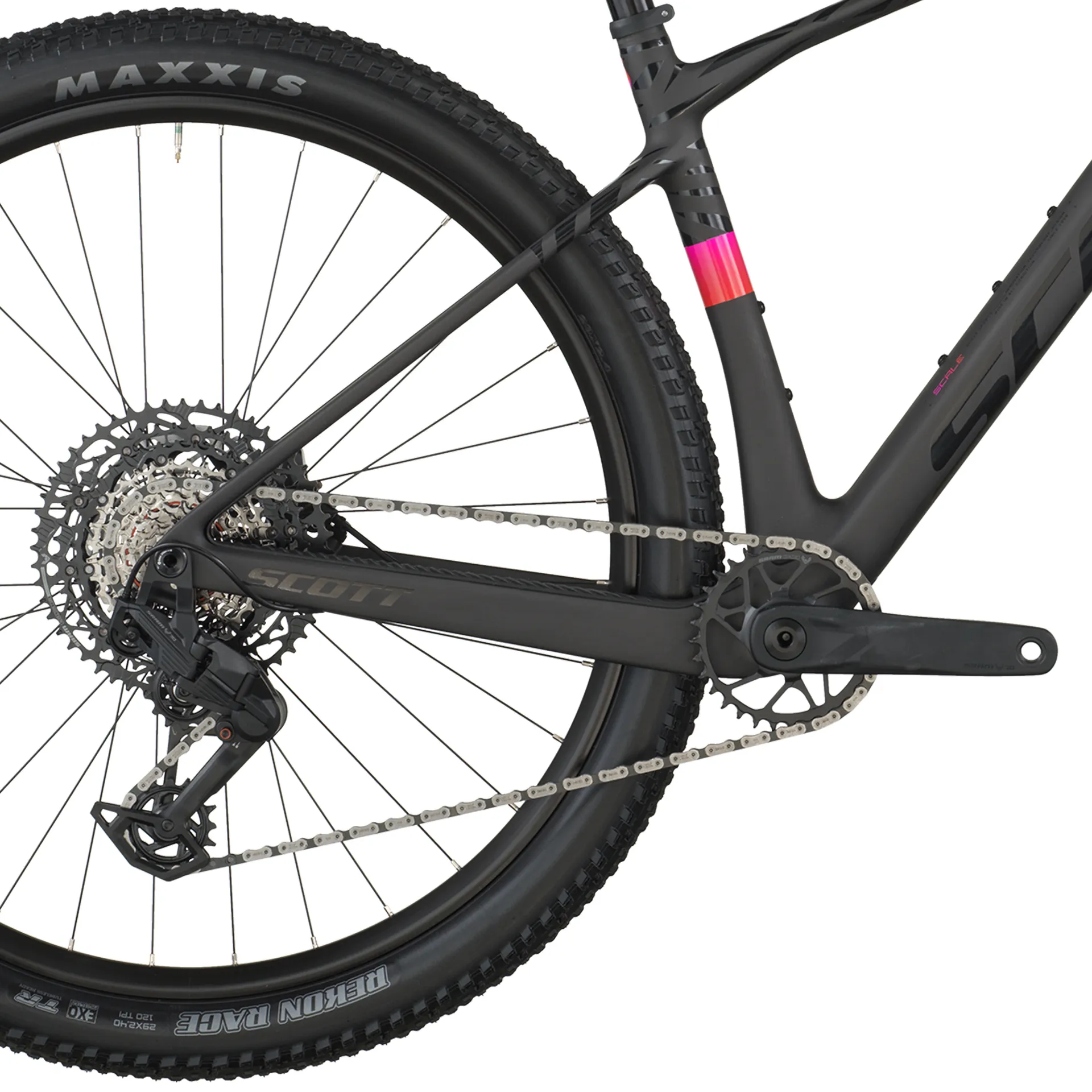 Ráfky Syncros X-30SE jsou připraveny pro bezdušové pláště, jsou osazeny pneumatikami Maxxis Rekon Race 29x2.4" s EXO ochranou. Tento set poskytuje vynikající trakci a stabilitu na různých površích. Řidítka, představec, sedlovka i další komponenty značky Syncros jsou navrženy pro pohodlí a přesné ovládání kola. Integrovaný systém vedení kabelů přispívá k čistému vzhledu a ochraně komponent.